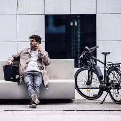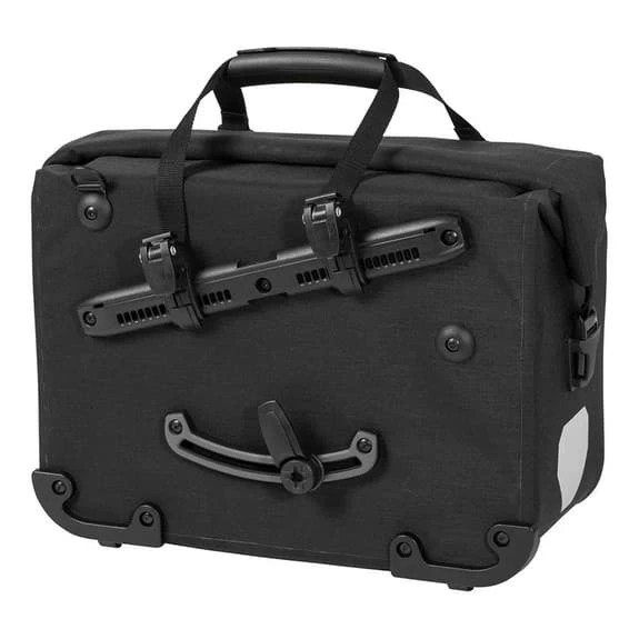La borsa portadocumenti impermeabile con chiusura avvolgibile può essere fissata a destra o a sinistra del portapacchi e può essere agganciata o sganciata molto velocemente. La Office-Bag offre spazio sufficiente per due cartellette DIN A4 (formato L), penne, telefono o altro. Dispone inoltre di un compartimento per il laptop (fino a 15,4″), compatibile con l’imbottitura acquistabile a parte.