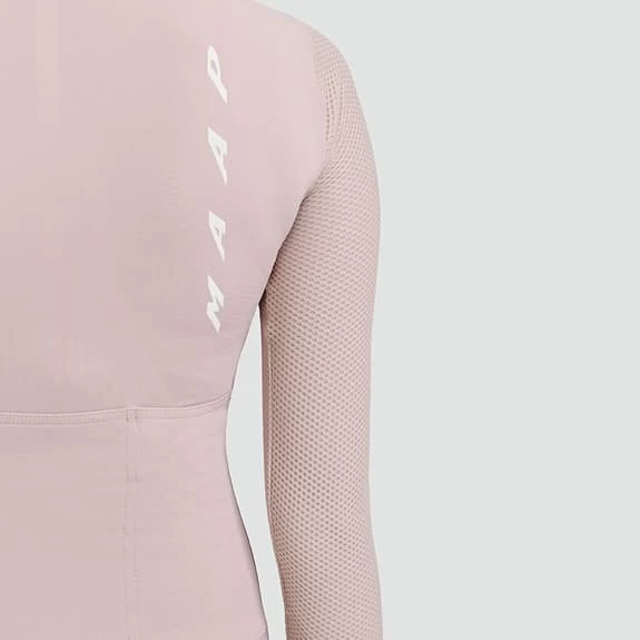 La maglia MAAP Evade Pro Base a maniche lunghe da donna è progettata per le uscite più fresche nei giorni di mezza stagione. Le maniche in rete a nido d’ape, insieme ai tessuti italiani ultra morbidi, aumentano il flusso d’aria e la traspirazione in ogni momento, aiutando a mantenere il comfort durante lo sport. La grafica riflettente permette una visibilità a 360º in qualsiasi condizione, e la protezione solare UPF +50 fornisce un ulteriore strato di copertura per le giornate in bicicletta.