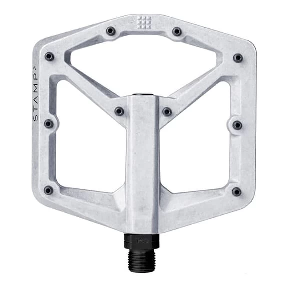 Pedali a piattaforma Crankbrothers Stamp 2 Large presentano un composto specifico e un’interfaccia ottimizzata per le scarpe. 10 pins regolabili su ciascun lato.