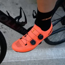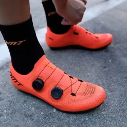 Le scarpe DMT KR0 sono progettate per offrire una combinazione di leggerezza, prestazioni e comfort per il ciclismo su strada. La copertura, realizzata in tessuto a maglia di ultima generazione, facilita la traspirazione, l’adattabilità e fornisce una leggerezza ideale per eliminare qualsiasi peso che potrebbe impedirti di raggiungere i record previsti. La suola anatomica in carbonio SL fornisce un eccellente trasferimento di energia ad ogni pedalata. La doppia chiusura BOA Li2 permette una regolazione precisione con un solo movimento.