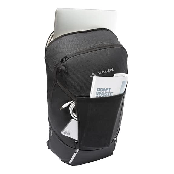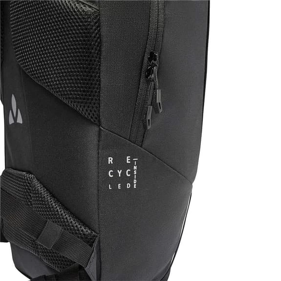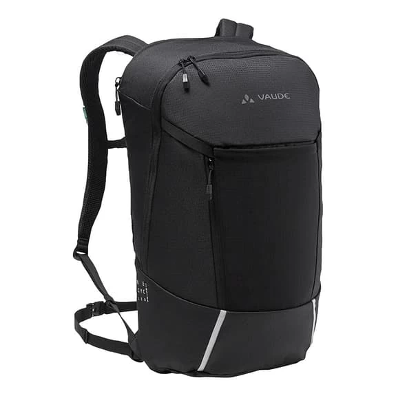Lo zaino VVaude Cycle, con una capacità di 22 litri, è un accessorio versatile per i tuoi spostamenti in bicicletta in città. È caratterizzato da un design chiaro e offre spazio per tutto ciò che serve per andare al lavoro o all’università. I documenti DIN A4 si inseriscono facilmente nell’ampio scomparto principale e un organizzatore in rete con cerniera aiuta a tenere in ordine i piccoli oggetti. Uno scomparto separato e imbottito con chiusura a zip può contenere computer portatili fino a 15,6 pollici. Sul davanti è presente una tasca piatta con cerniera per accedere rapidamente a ciò che serve. Un supporto per il casco, elementi riflettenti integrati in modo attraente nel design frontale e comodi spallacci completano le caratteristiche pratiche della borsa. Il materiale principale dello zaino è costituito per il 50% da poliestere riciclato, mentre il materiale di contrasto è riciclato al 100%. L’Eco Finish, idrorepellente e privo di PFC, è in grado di resistere alla pioggia leggera, mentre per gli acquazzoni più intensi è inclusa una copertura impermeabile. In qualità di membro dell’organizzazione indipendente Fair Wear con status di leadership, Vaude si impegna a garantire condizioni di lavoro e salari equi nella produzione dei suoi prodotti. Inoltre, questo prodotto è neutrale dal punto di vista climatico, poiché tutte le emissioni derivanti dai materiali, dalla produzione e dalla spedizione sono state sistematicamente analizzate da Vaude e ridotte. Le emissioni attualmente inevitabili sono state completamente compensate dall’organizzazione indipendente no-profit myclimate.